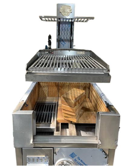 Una parrilla abierta que, gracias a su cómodo sistema de elevación y freno posicional, permite regular la altura entre los alimentos y las brasas con seguridad y un mínimo mantenimiento.